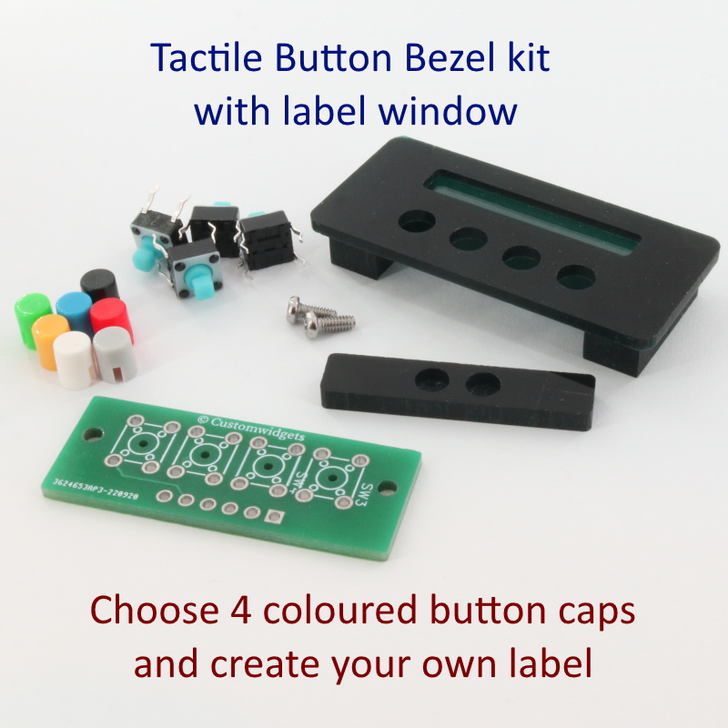 This is a variant of our 4-button Tactile Button Bezel. This high quality, glossy item is supplied as a kit.